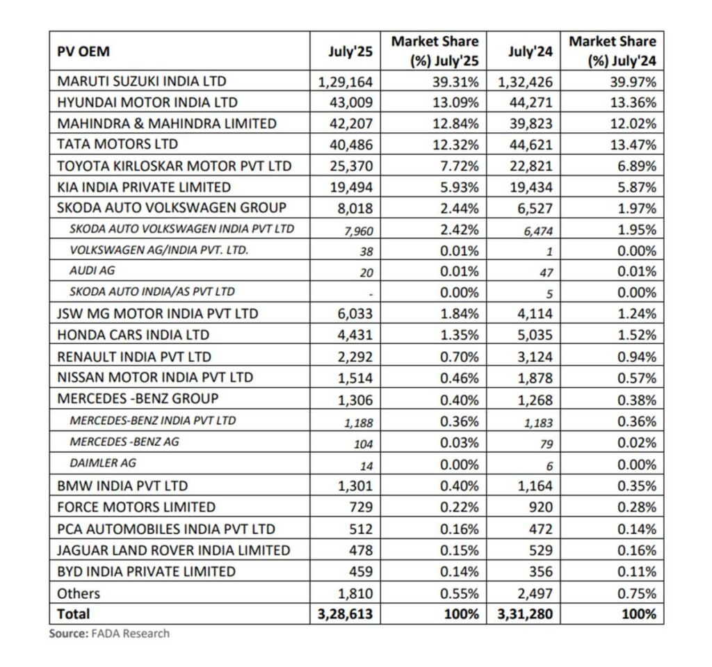 1. Maruti Suzuki – 1,29,164 units (39.31% share)